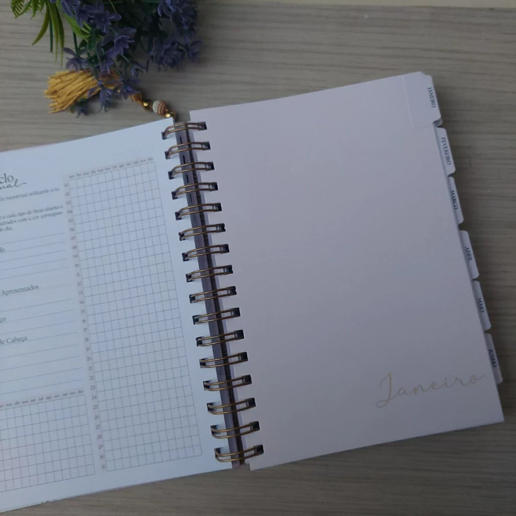 Todos os meses possuem: Planejamento diário dividido em três partes para que você utilize como melhor se adaptar a sua vida (manhã, tarde, noite ou vida pessoal, profissional e acadêmica, por exemplo). O planejamento semanal é de segunda a domingo em duas páginas. Visão completa da semana.